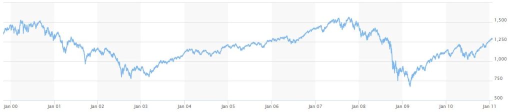 También puede haber un largo periodo de tiempo durante el cual las circunstancias no sean favorables, como ocurrió entre los años 2000 a 2011 en el que el índice S&P 500 tuvo un rendimiento negativo.